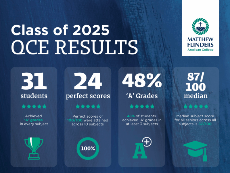 The Class of 2025 of Matthew Flinders Anglican College has achieved exceptional QCAA subject results, with 31 graduates achieving ‘A’ grades in every subject.